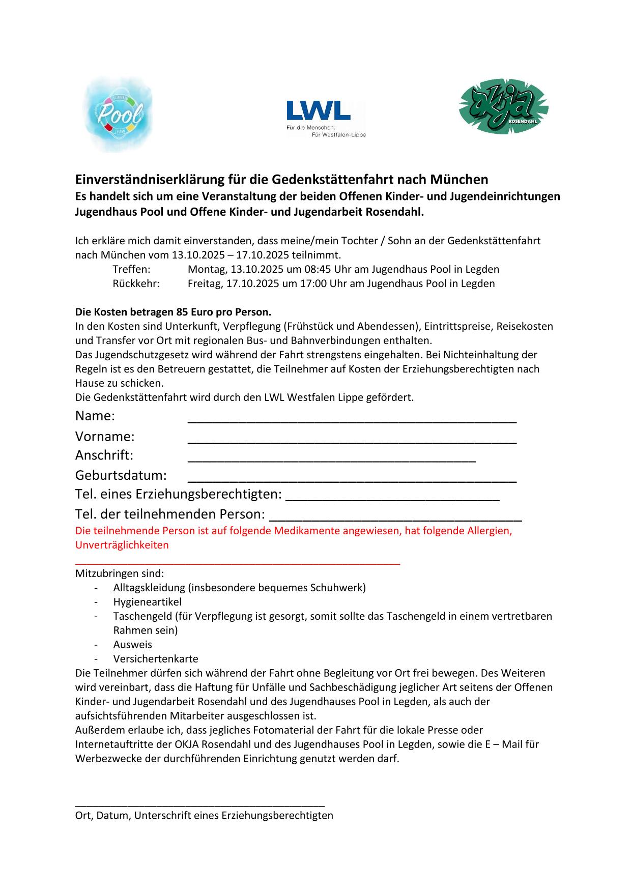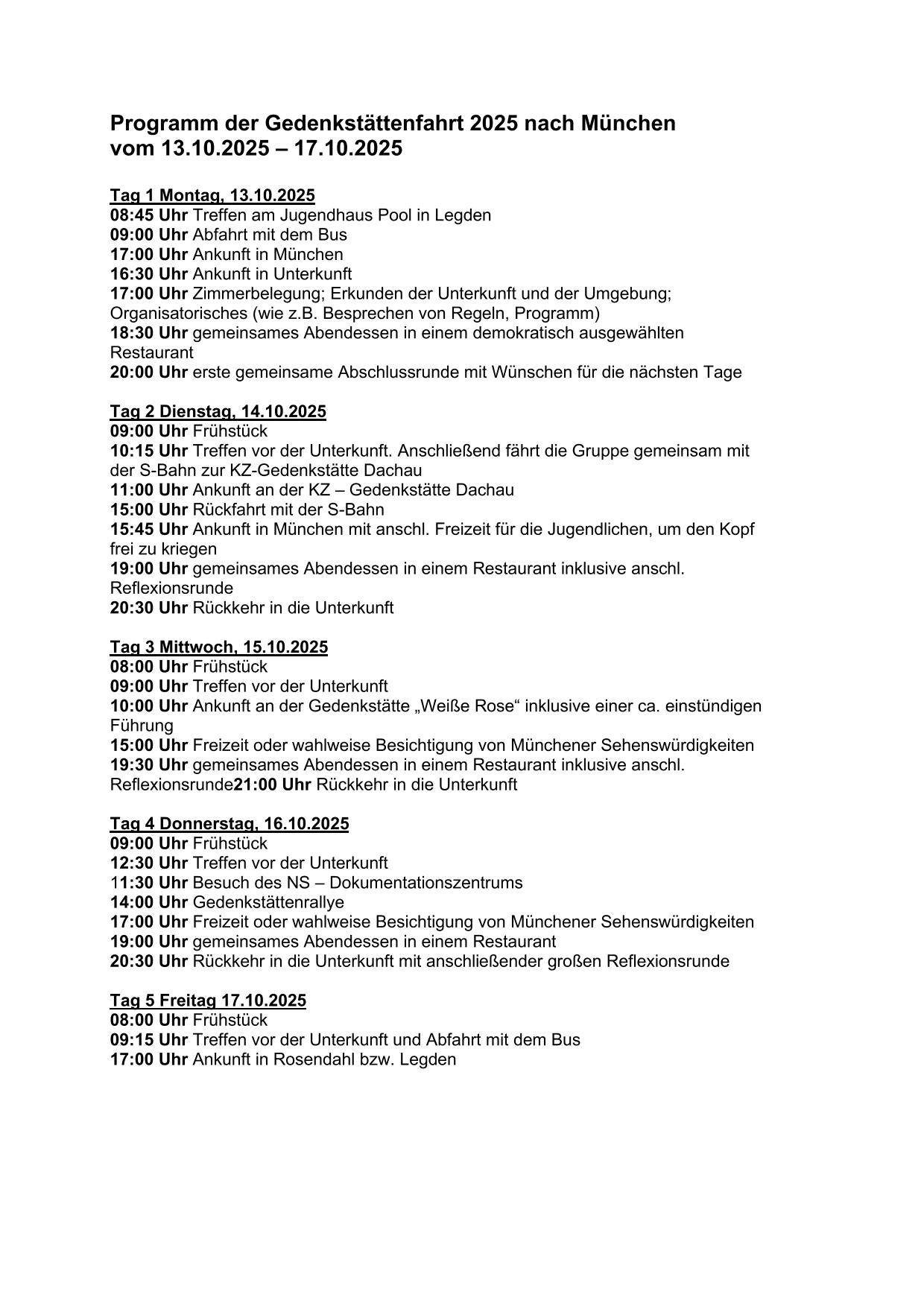 Wir begeben uns erneut gemeinsam mit dem Jugendhaus Pool aus Legden auf eine Gedenkstättenfahrt. In diesem Jahr besuchen wir wieder das wunderschöne München. Dort werden wir uns wieder auf die Spuren des 2.Weltkriegs begeben. Wir werden das KZ Dachau besuchen, die Gedenkstätte "Weiße Rose" erkunden, das NS-Dokumentationszentrum besuchen und unsere beliebte Gedenkstättenrallye durchführen. Ansonsten dürfen die Teilnehmer*innen die Stadt München selbstständig oder mit den Betreuer*innen erkunden.